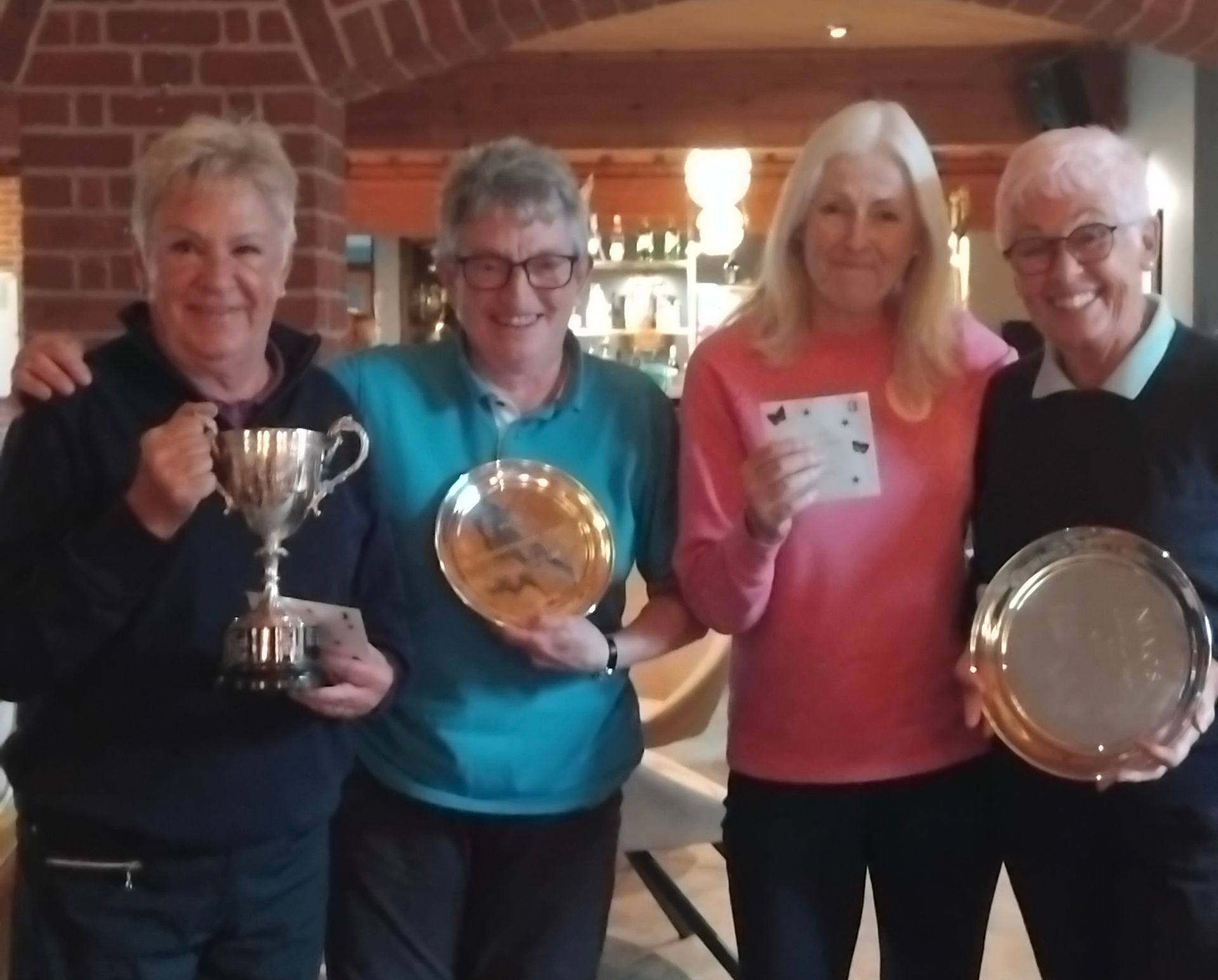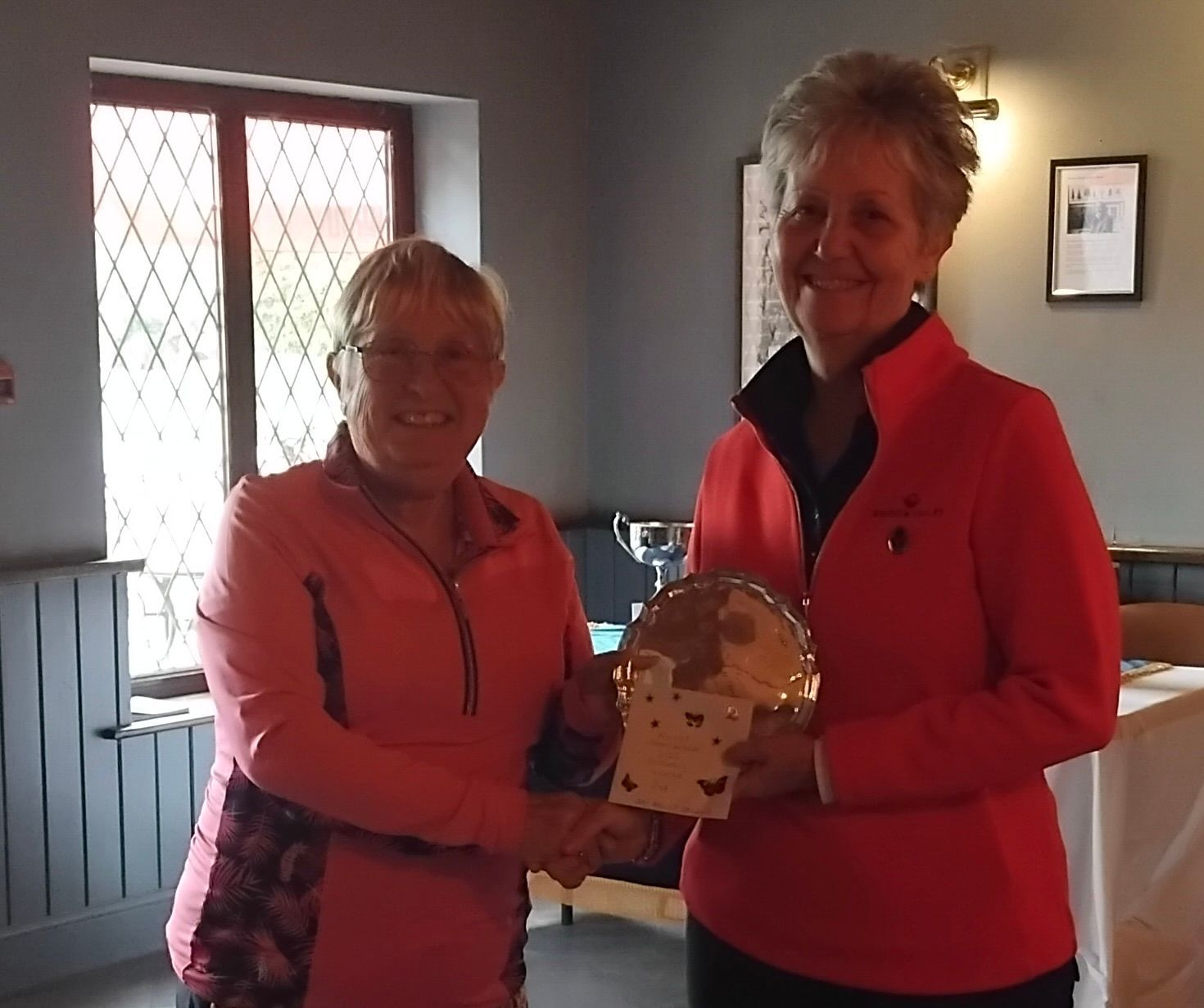 Congratulations to the winners who were as follows, in Division 1 Scratch and defending her title, winning the Championship Cup with a fine score of 81 was Sue Clarke from Kings Lynn, runner up winning the Joy Boult Salver, was Anne Sibley from Wensum Valley with 87. Best Nett, winning the Pallister Cup for Division 1 was also Sue Clarke from Kings Lynn with a score of 73, so a double winner. The Over 65 Gwen Watts Salver was won by Anne Sibley with a score of 76ocb.